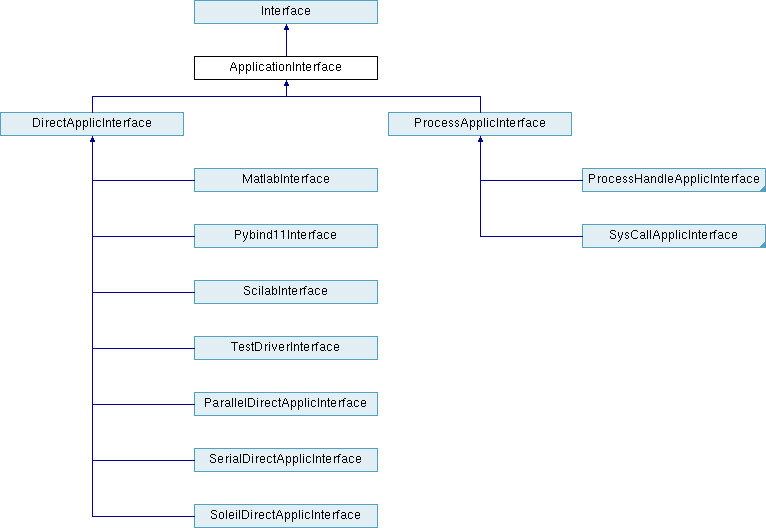 ApplicationInterface provides an interface class for performing parameter to response mappings using simulation code(s). It provides common functionality for a number of derived classes and contains the majority of all of the scheduling algorithms in DAKOTA. The derived classes provide the specifics for managing code invocations using system calls, forks, direct procedure calls, or distributed resource facilities.
