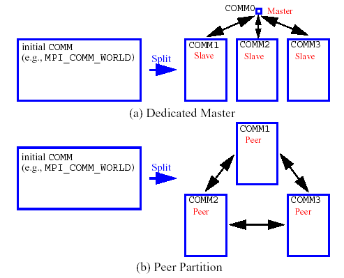 Dakota’s parallel facilities support a broad range of computing hardware, from custom massively parallel supercomputers on the high end, to clusters and networks of workstations in the middle range, to desktop multiprocessors on the low end. Given the reduced scale in the middle to low ranges, it is more common to exploit only one of the levels of parallelism; however, this can still be quite effective in reducing the time to obtain a solution. Three single-level parallelism models will be discussed, and are depicted in Fig. 59: